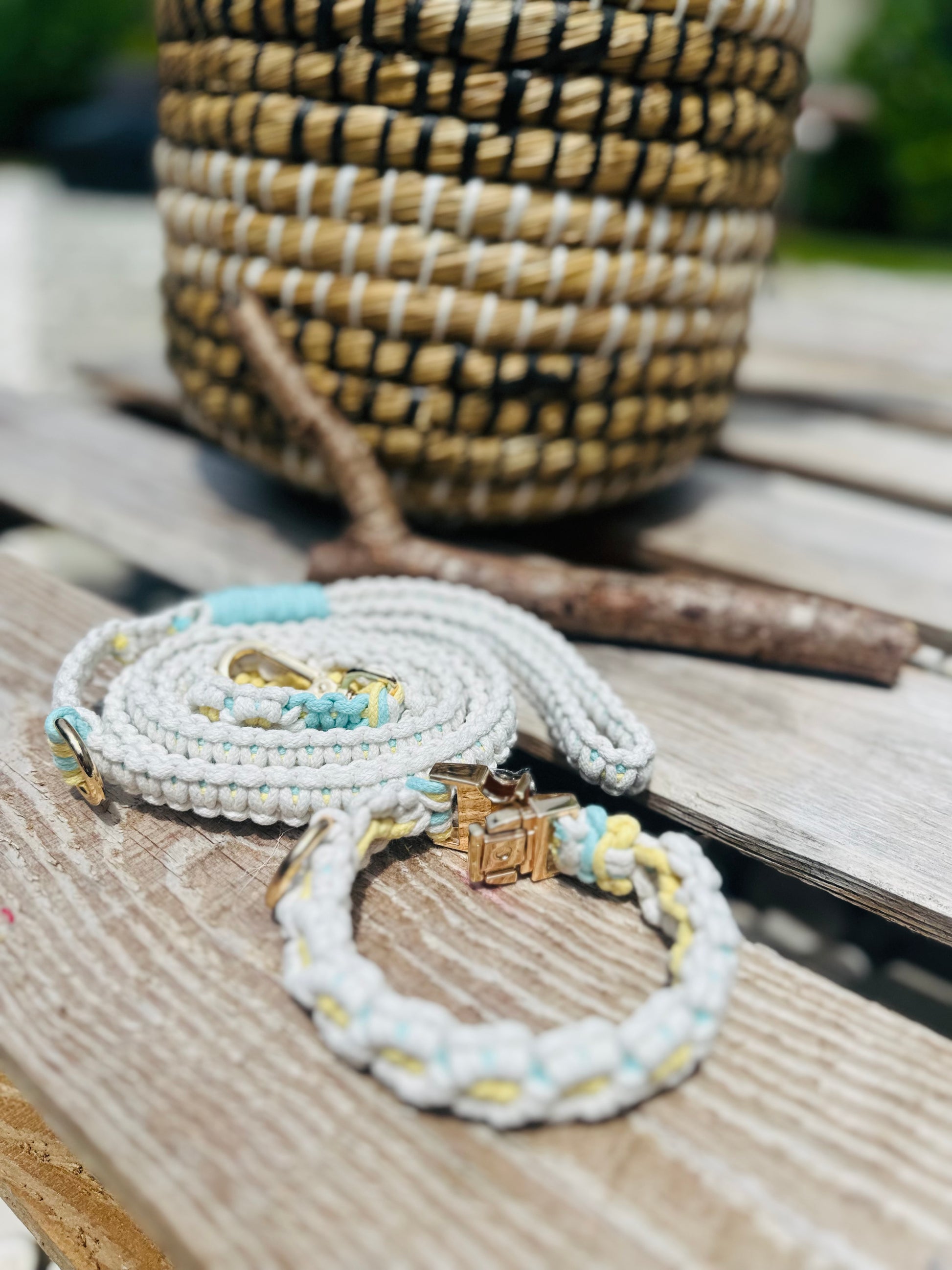 Add Flair your furry friend's style with our handmade macrame dog leash. Crafted with care and attention to detail, each piece exudes charm and character,perfect for enhancing your pup's personality on walks or outings.