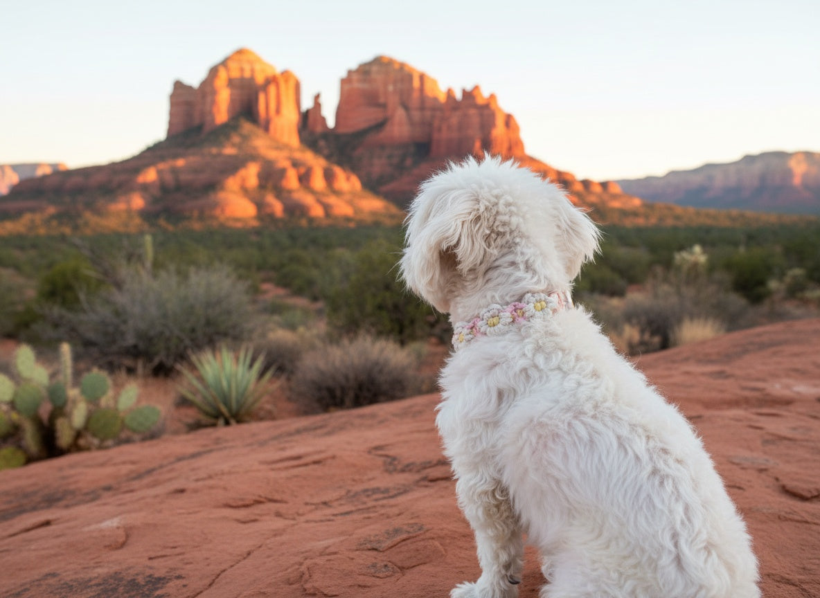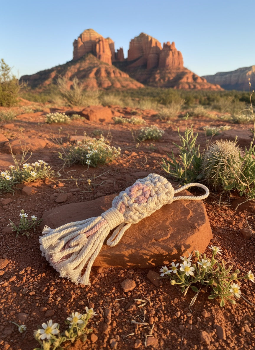 Bright and playful 🌸☀️, the Daisy Days Macrame Collar is handwoven in cheerful pink and yellow tones, inspired by flower fields in bloom. Crafted from strong macrame cord with secure gold hardware, it blends durability with a free-spirited boho look. Perfect for stylish pups who carry sunshine energy wherever they go. Matching Leash, Bandana, Poop Bag available.